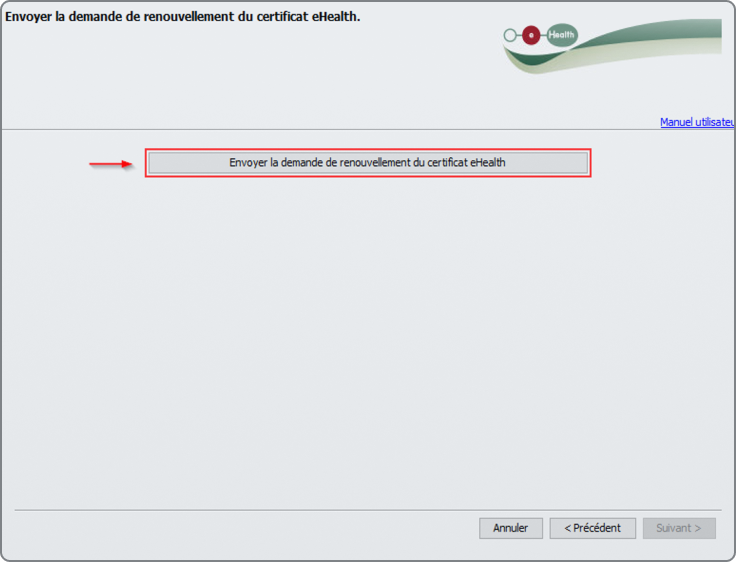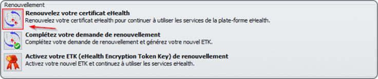 Pour commencer, appuyez sur le bouton "Renouveler votre certificat eHealth".