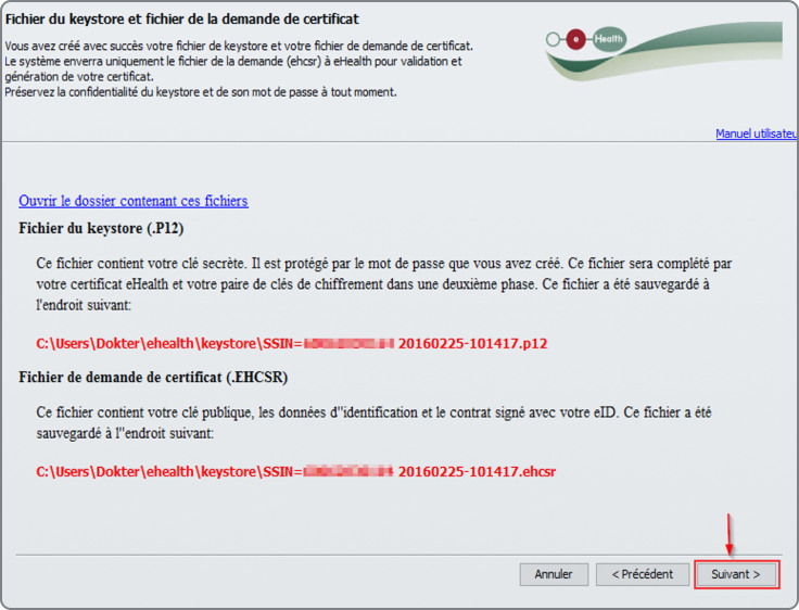 Si votre ordinateur contient plusieurs certificats eHealth, vous devrez d'abord sélectionner le vôtre en cliquant sur le bouton "Sélectionner le keystore". Vous pouvez retrouver votre certificat en utilisant votre numéro d'enregistrement national.
