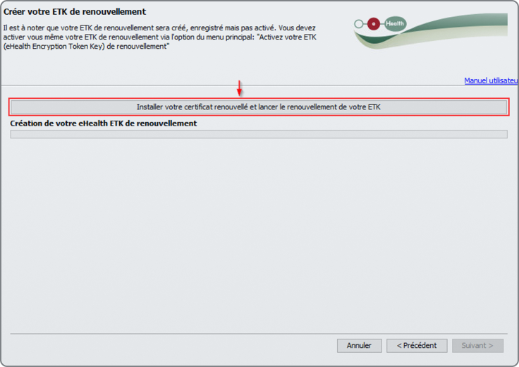 Cliquez sur le bouton "Installer votre certificat renouvelé et commencer le renouvellement de votre ETK".